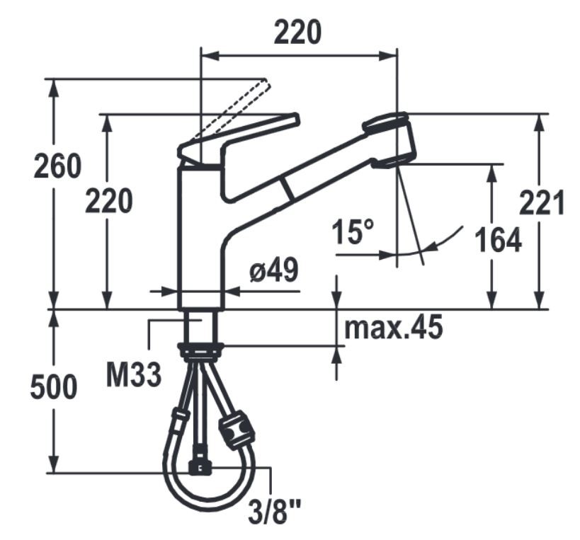 Auslauföhe: H 164 / 221 mm