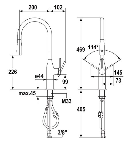 Anschluß: flexible Anschlußschläuche 3/8" Gewinde