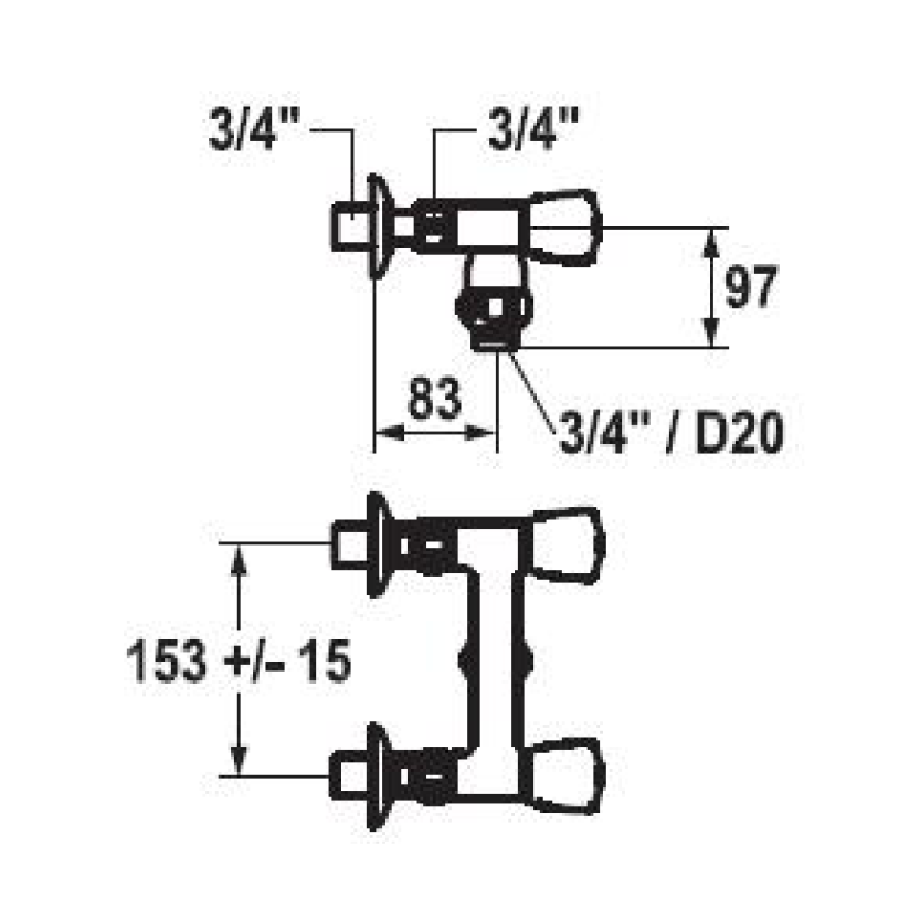Abstand der Anschlußgewinde: 153 mm (+/- 15 mm über Exzenteranschlüsse)