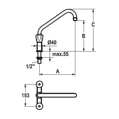 Abstand der Anschlußgewinde: 153 mm